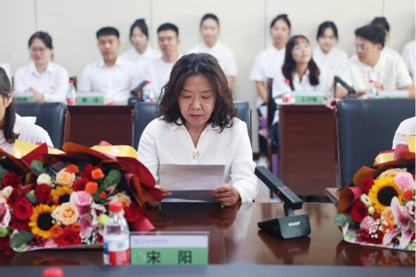 党委副书记、院长刘学,副院长潘玉昆分别为新入职教师赠送鲜花和入职纪念品。