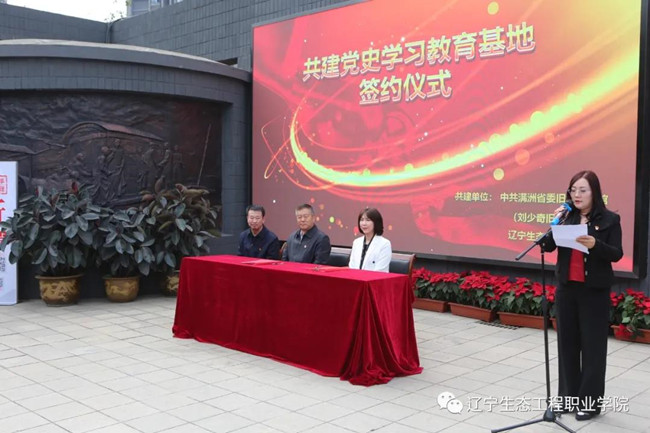 中共满洲省委旧址纪念馆、刘少奇旧居纪念馆副馆长孙中美与学院党委书记刘占军共同签署了共建协议书,学院与中共满洲省委旧址纪念馆结成共建单位,学院将充分利用党史学习教育基地红色资源,以党史学习教育、爱国主义教育以及红色文化教育为主线,引导师生树立热爱祖国报效祖国的世界观、价值观、人生观,校馆共聚教育合力,共同受益、共同发展。